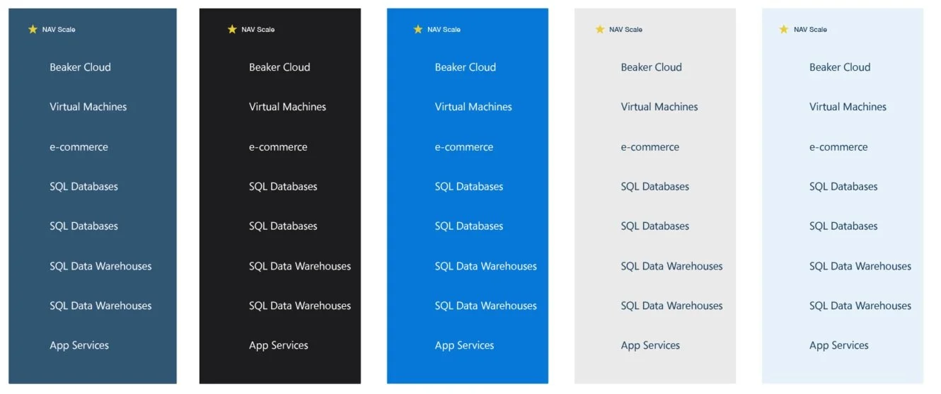 1: One set of icons that would work on all 5 Azure portal background colors. Black, White, Light Gray, Light Blue and Azure Blue.